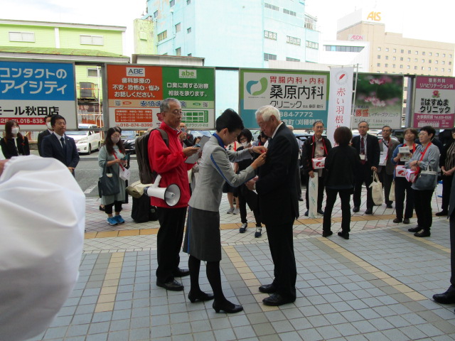 令和7年10月1日(水)に秋田駅周辺において赤い羽根共同募金の街頭募金活動を実施しました。