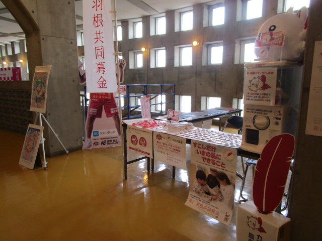 秋田ノーザンハピネッツ様には「赤い羽根サポーター」としてご協力をいただいており、今回もゲーム会場に募金ブースを設置させていただきました。