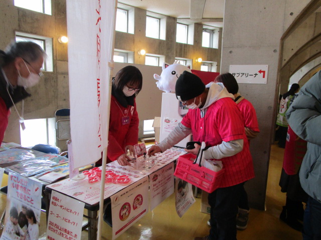 令和8年2月14日(土)秋田ノーザンハピネッツホームゲーム会場で、今年度4回目の募金活動を行いました。