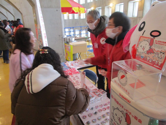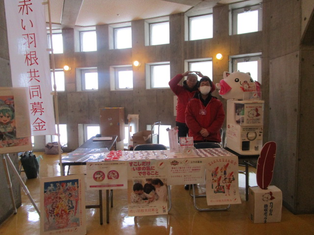秋田ノーザンハピネッツ様には「赤い羽根サポーター」としてご協力をいただいており、今回もゲーム会場に募金ブースを設置させていただきました。