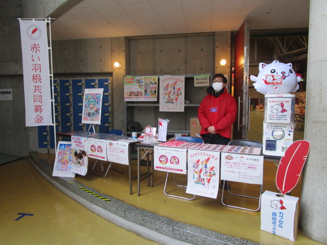 秋田ノーザンハピネッツ様には「赤い羽根サポーター」としてご協力をいただいており、今回もゲーム会場に募金ブースを設置させていただきました。