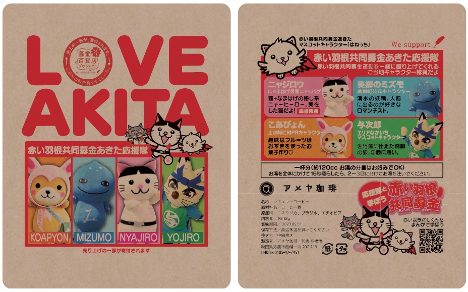 | パッケージプラザ由利本荘店 | 地場産食べて、地域のために、誰かのために!~目印は「由利本荘市産」「しこたまいいね秋田産」「秋田県産」の結束テープ | オリジナル結束テープび売り上げの一部を寄付 | R3.1.6~ | |