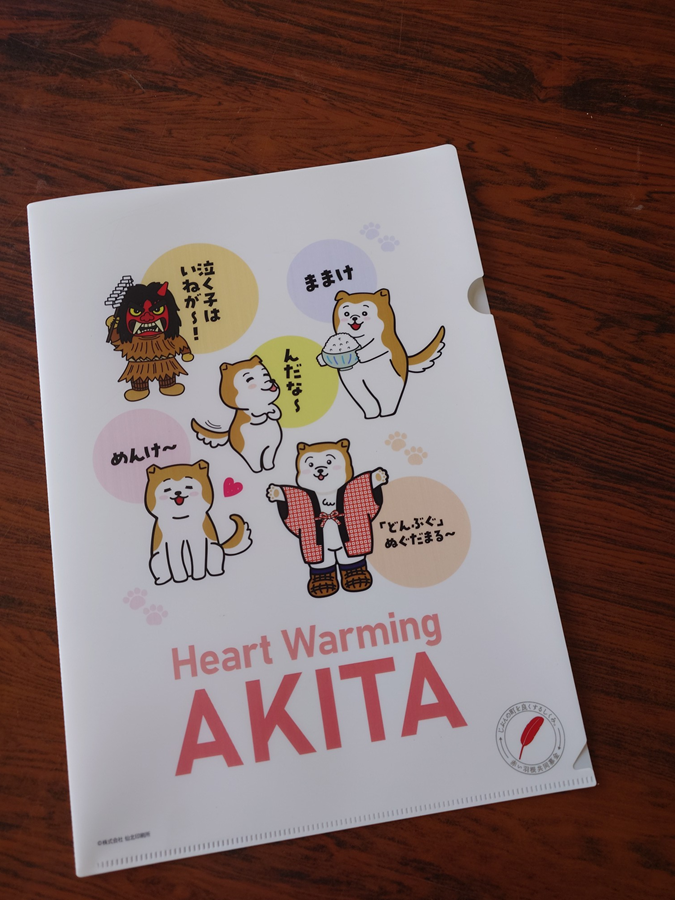 秋田杉を特殊加工し秋田の風物を印刷した クリアファイル1枚につき50円を寄付 |
